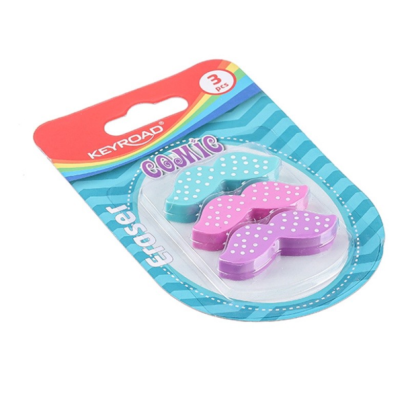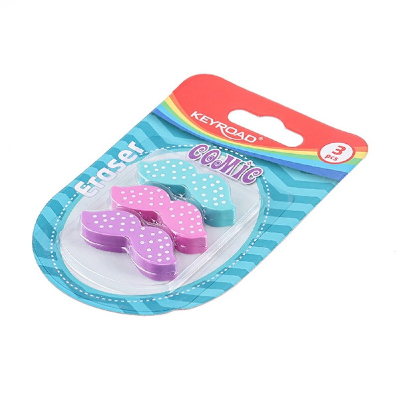ERASER, KEYROAD, MUSTACHE, 3PCS/BLISTER CARD