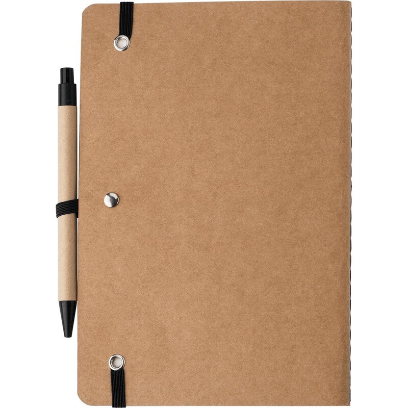 Notebook A5 made of recycled cardboard (120 blank sheets), elastic band for closure, wheat straw pen included