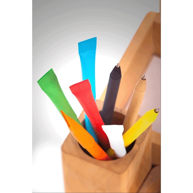 Ball pen with matching colour cap, writes in blue, product made of rolled paper