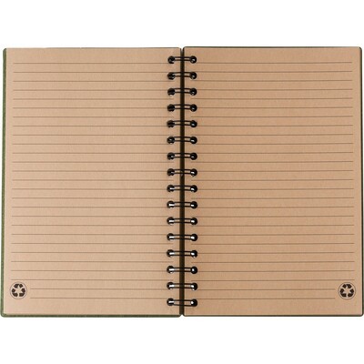 Eco-friendly notebook with a sturdy hard cover made from recycled cardboard and kraft paper. Contains 80 lined sheets—perfect for notes, meetings, or journaling. A sustainable choice for everyday writing.