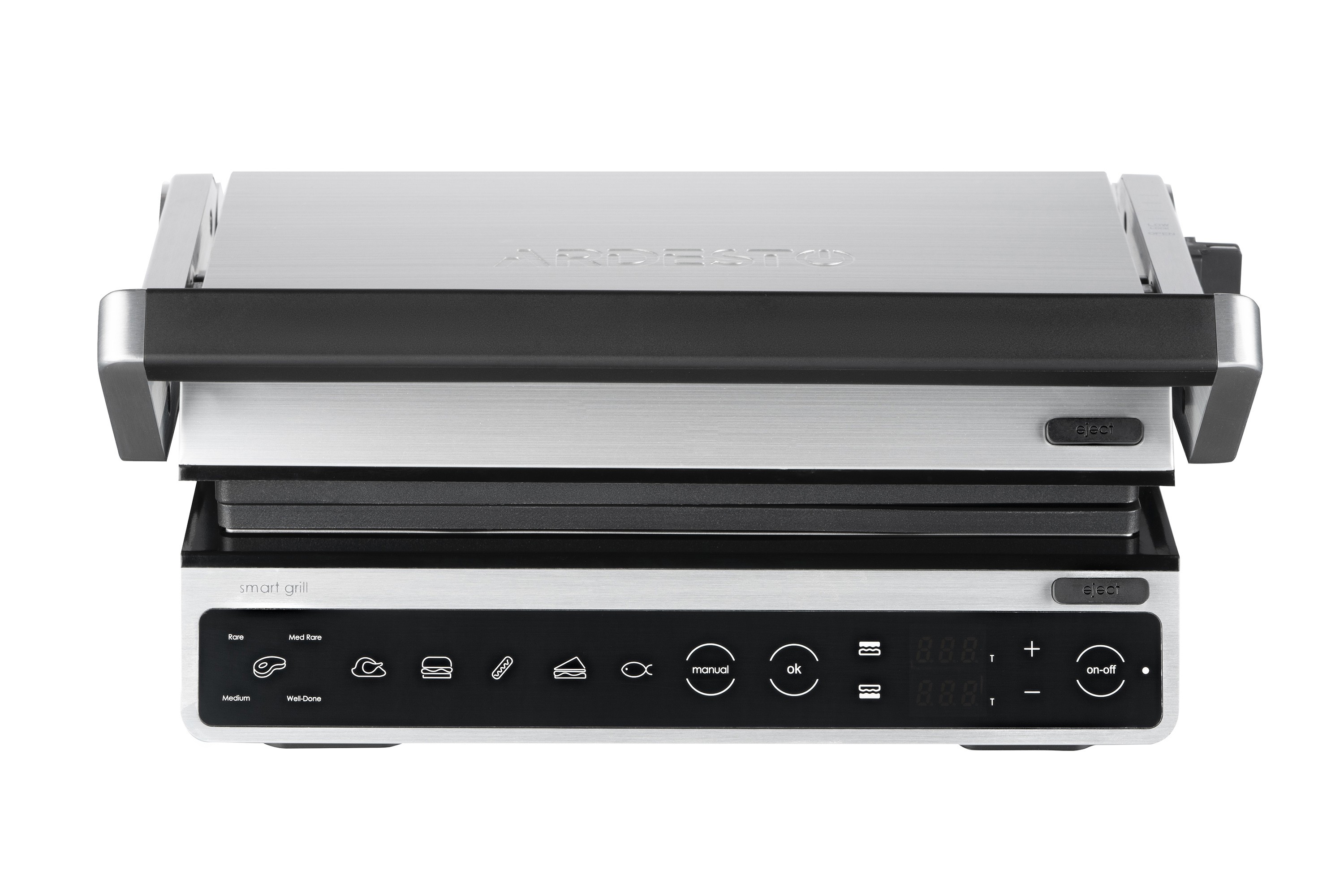 2000 ვატიანი ელექტრო გრილი, სენსორული კონტროლით, ექვსი ავტომატური მომზადების რეჟიმით, ტემპერატურის, შეწვისა და მზადყოფნის კონტროლით, ასევე პროდუქტის სისქის ავტომატური განსაზღვრით. გრილის ფირფიტების სრული გახსნა საშუალებას იძლევა ერთდროულად გამოიყენოთ ორივე ზედაპირი, ასევე იძლევა თითოეული ფირფიტისთვის ცალკე ტემპერატურის დაყენების შესაძლებლობას. მოსახსნელი არაწებოვანი საფარით დაფარული ფირფიტები და ცხიმისა და სხვა ნარჩენების შესაგროვებელი უჯრა მოწყობილობის გაწმენდასა და რეცხვას მოსახერხებელსა და მარტივს ხდის.