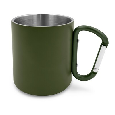 Mug 280 ml with carabiner clip, made from recycled stainless steel, double walled