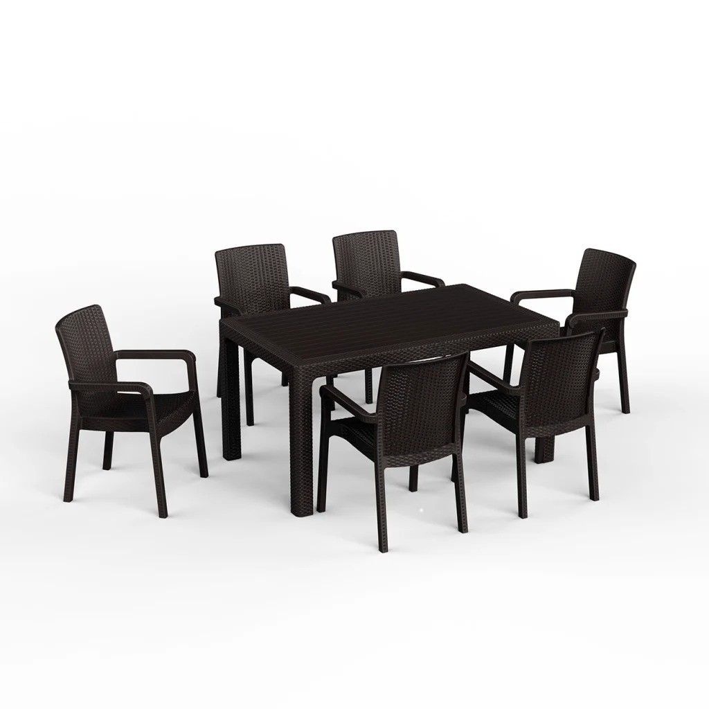 რატანის მაგიდა 6 სკამით ყავისფერი (SP925)