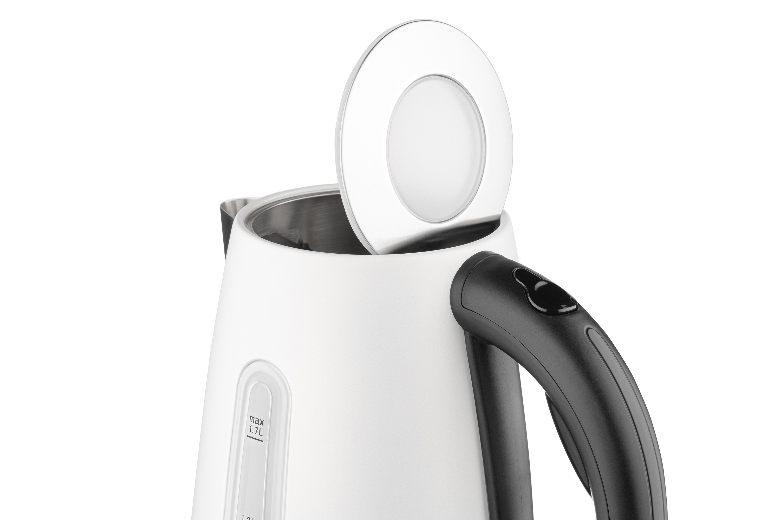 თეთრი ფერის მეტალის ელექტრო ჩაიდანი Strixcontroller-ით გადახურებისგან დასაცავად. ჩაიდანის EKL-F300W მოცულობა 1.7 ლიტრია, ხოლო სადგამი უზრუნველყოფს 360°-იან ბრუნვას. სადგამი, ძირი და სახელური დამზადებულია შავი პოლიკარბონატისგან. ჩაიდანის ძირითადი ნაწილი დამზადებულია შეღებილი ლითონისგან. მოცულობის ნიშნულები 0.5 ლიტრიდან 1.7 ლიტრამდე, აღჭურვილია განათებით.
