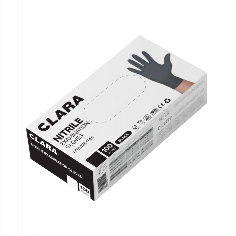 ერთჯერადი სამედიცინო ხელთათმანი ნიტრილი, CLARA (50 წყვილი, 100 ცალი) L ზომა შავი