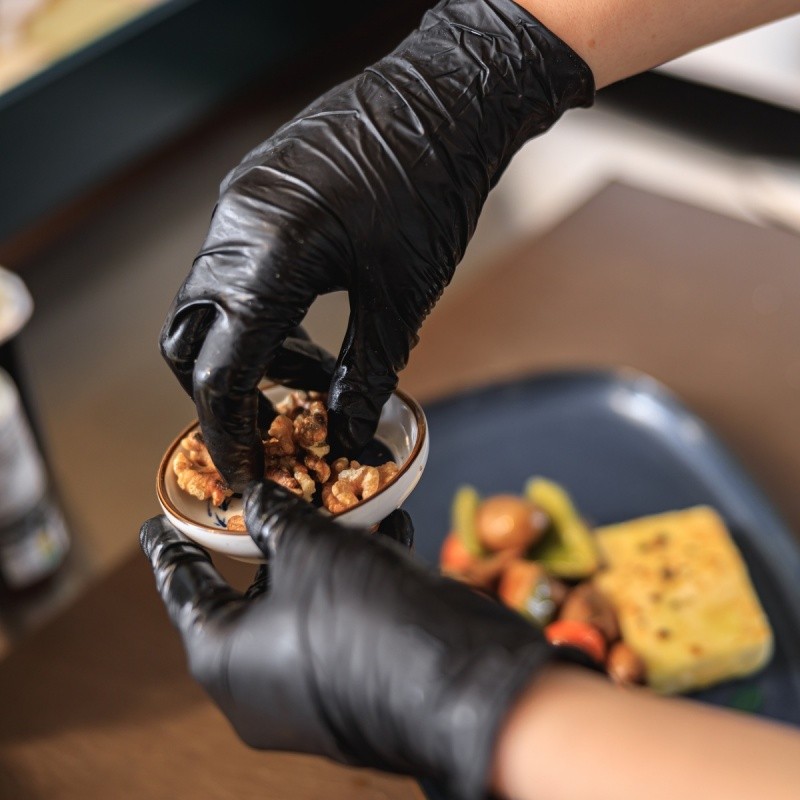 • შავი ფერი ხელთათმანებს პროფესიონალურ იერს ანიჭებს, ხოლო მოწინავე ნიტრილის მასალის მახასიათებლები მათ იდეალურ არჩევნად აქცევს როგორც სამედიცინო, ასევე სამრეწველო გამოყენებისთვის